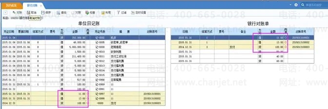 l 银行对账-取消勾对(查询发现勾对错了,可以取消)。