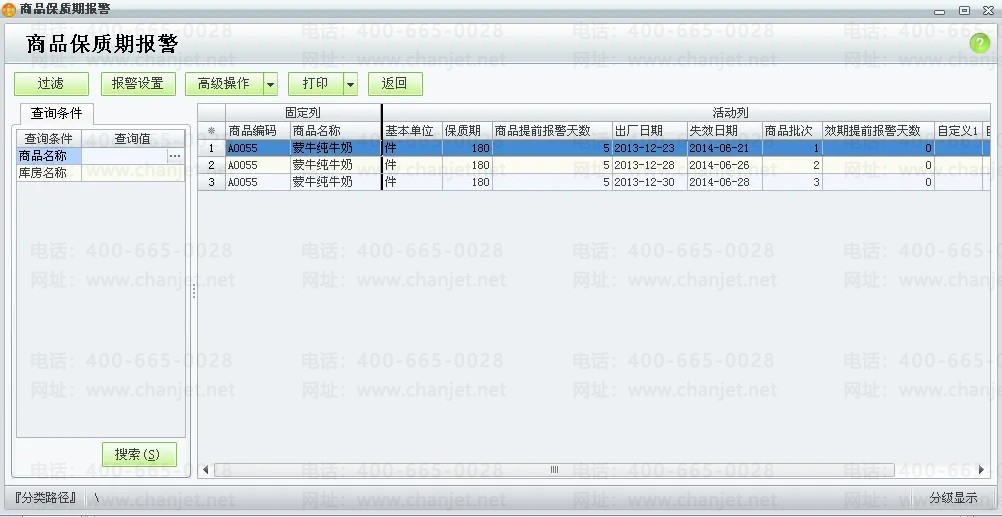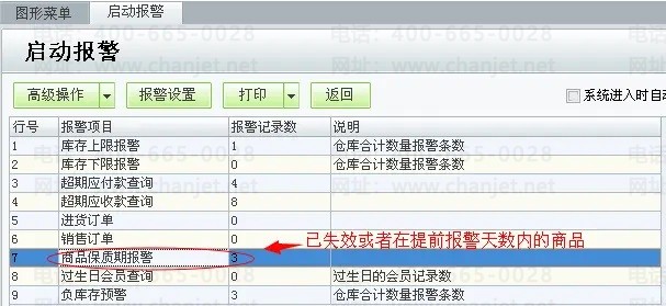 根据设定的保质期报警提前天数,以及保质期截止日期,在启动报警中会有报警记录数