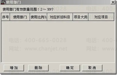 点击增加,录入使用部门和使用比例,以及对应的折旧科目