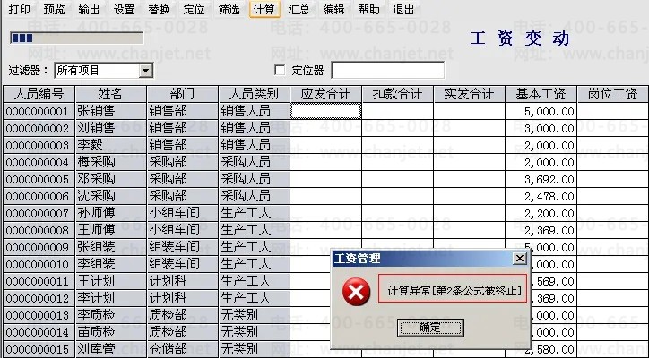 工资变动计算过程中经常会弹出报错的提示,如计算过程终止,以下就大部分可能出现的原因进行分析。