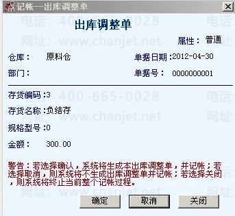 【解决方案】当入库单记账时,如果账面为负结存,按入库的数量比例调整结存成本,并自动生成出库调整单。