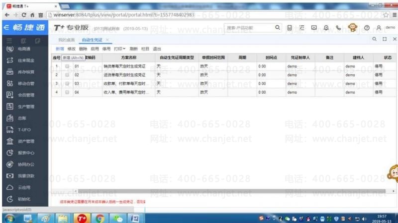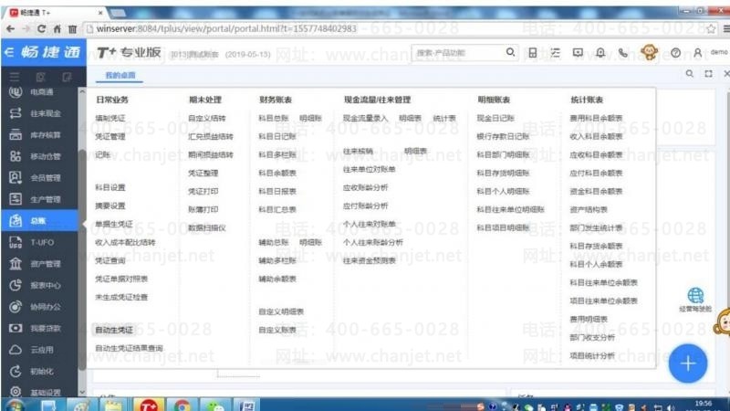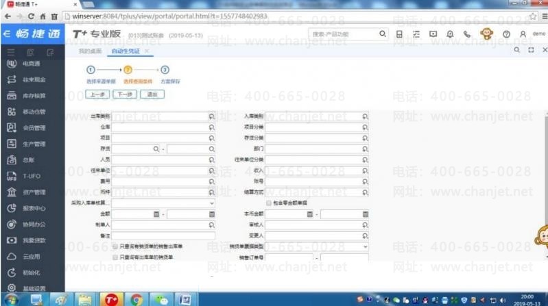 STEP1:登陆T+账套后,点击总账-自动生成凭证: