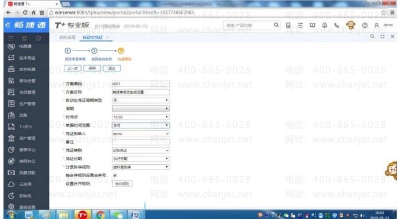 STEP5:编辑方案相关信息,选择生成凭证的周期、时间点、制单人等信息保存方案,注意时间点只能选择整点哦: