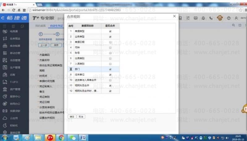 STEP6:如果需要单据合并生成凭证可勾选“按合并规则设置合并号”并根据需要设置合并规则: