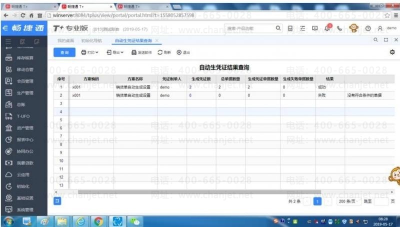 STEP8:到达设置的时间点有满足查询条件的业务单据则会自动生成凭证,是否有自动生成的凭证可点击总账-自动生凭证结果查询进行查看。