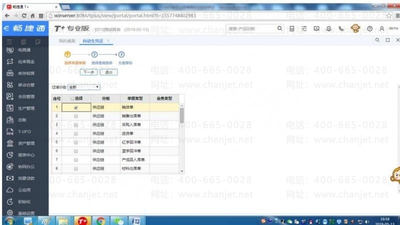 STEP3:选择需要自动生成凭证的来源单据后点击下一步: