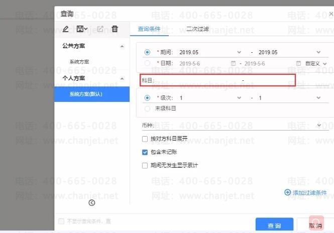 STEP2:如果需要连续打印所有科目的明细账,查询界面的【科目】范围不需要指定;