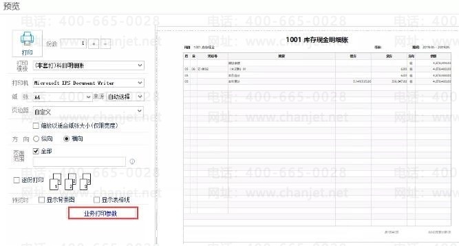 STEP4:进入预览界面后,点左下角的【业务打印参数】;