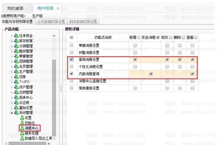 3.【系统管理】-【用户权限】-【授权】设置用户权限。
