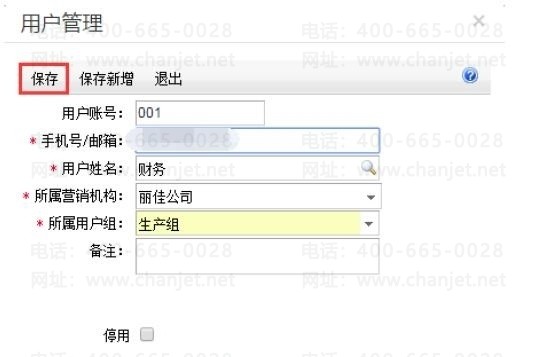 2、【系统管理】-【用户权限】-【新增】增加用户。