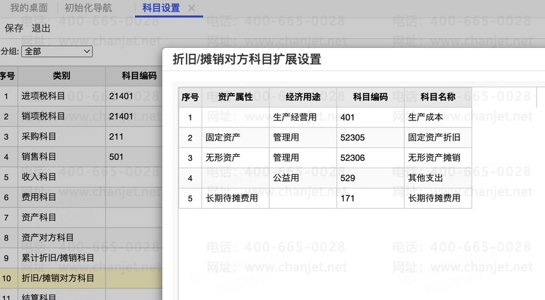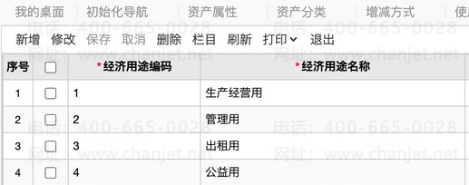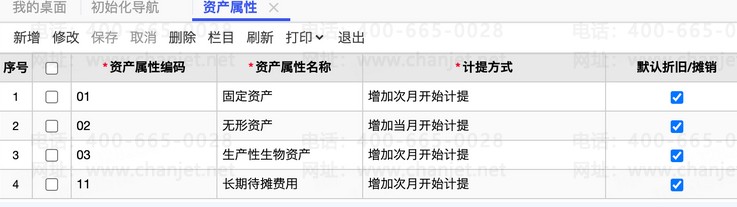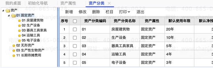 预置资产属性、资产分类、经济用途等相关资产档案