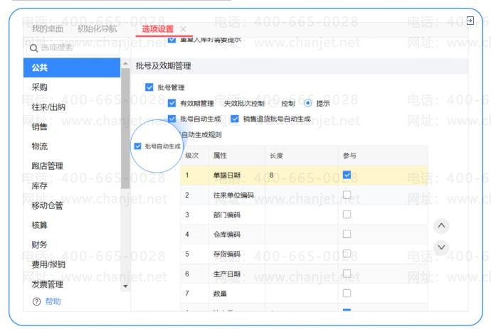 1>选项设置中勾选【批号自动生成】后。