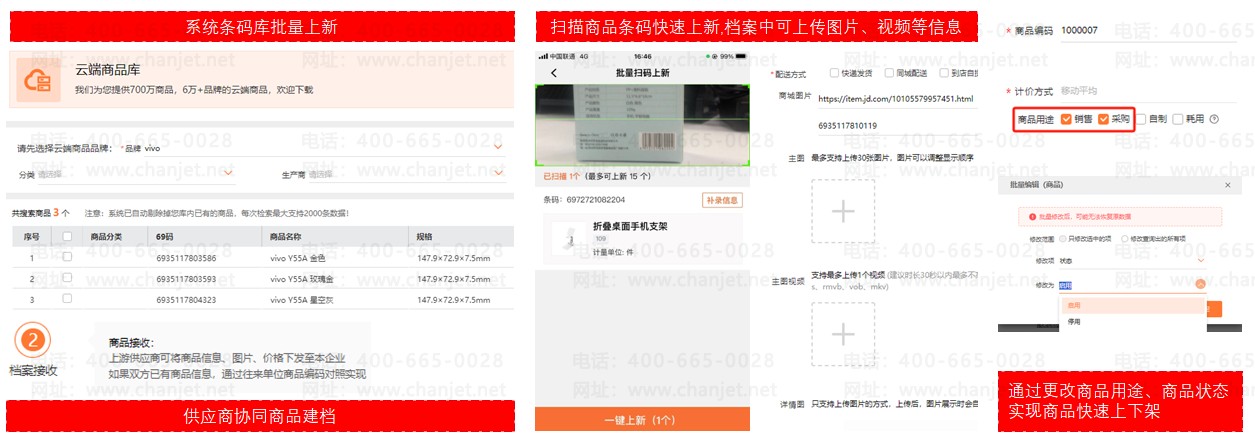 业务场景:3C行业商品SKU数量庞大,商品更新频率快,另外商品还需展现主图、详情图、视频等信息方便客户了解商品情况,企业在商品管理上普遍存在建档工作量大,建档效率低下、上下架繁琐等问题。