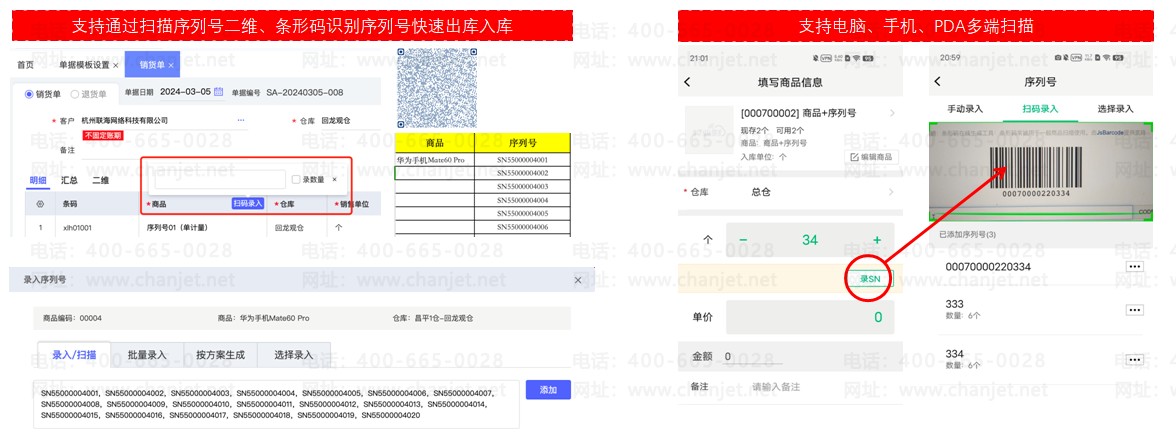业务场景:3C行业商品具有价值高、销售渠道管理严格、三包管理规范的特点,通过为每件商品赋予唯一的序列号值进行身份标识以实现商品在流通过程中的高效管理,但受序列号唯一性及编码复杂性的影响企业录入序列号时效率低且容易出错,严重影响内部业务处理效率。