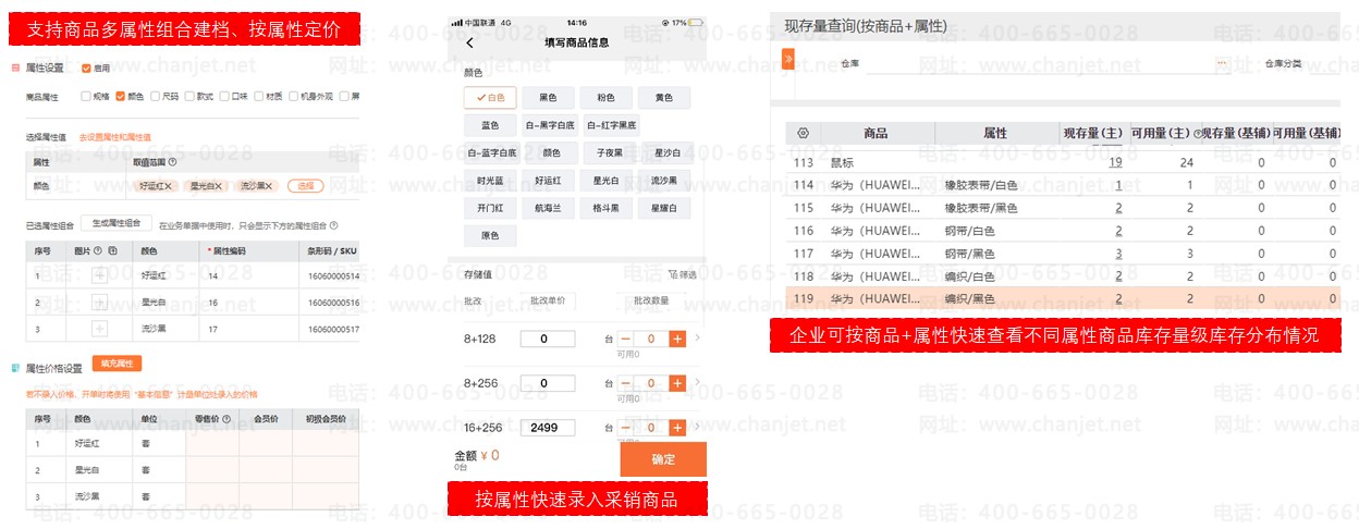 业务场景:3C行业商品价格一般会设置到最小销售单位,同一商品不同规格、属性、配置均有不同价格,企业管理系统如不支持商品设置属性价格,则会导致商品需一品一建档,导致商品档案量大会导致商品查询慢、系统卡顿等问题。