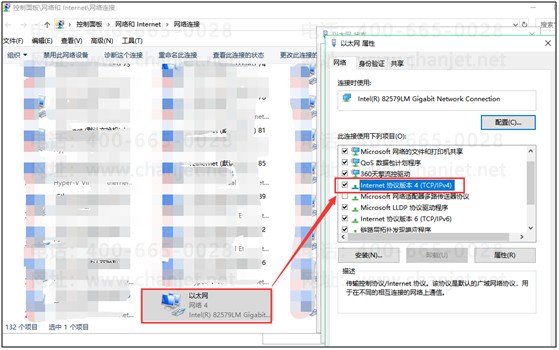 3、如果经过前面2个步骤检查没有问题,进入【控制面板】-【网络和 Internet】-【网络连接】,将 IPV4的 DNS服务器修改为114.114.114.114