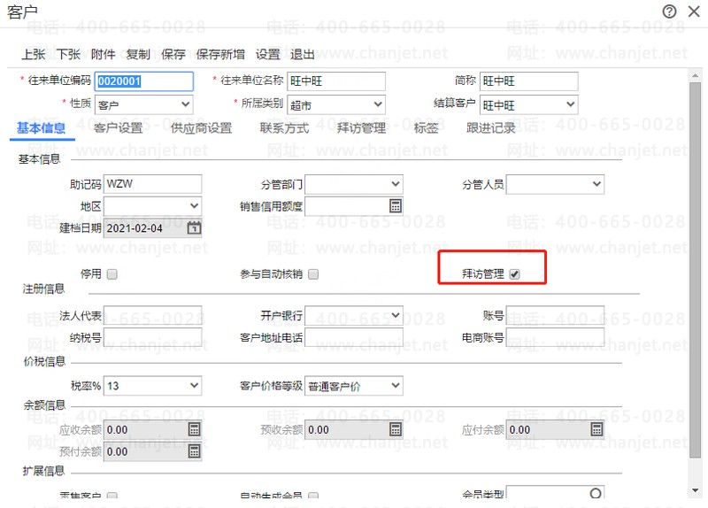 3. 往来单位档案里要勾选拜访管理,并且设置客户地址坐标;