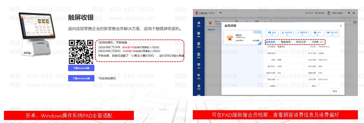 解决方案:好业财小畅收银支持多种收银方式,导购人员在PAD端可快速录完成会员建档开卡、储值等工作;录入会员信息后收银界面自动带出客户信息及历史消费情况,导购员可根据客户购买偏好为其介绍推荐店内商品;收银时可通过PAD扫描录快速录入客户购买的商品并查看商品当前促销信息,同时支持扫码快速收银结账。