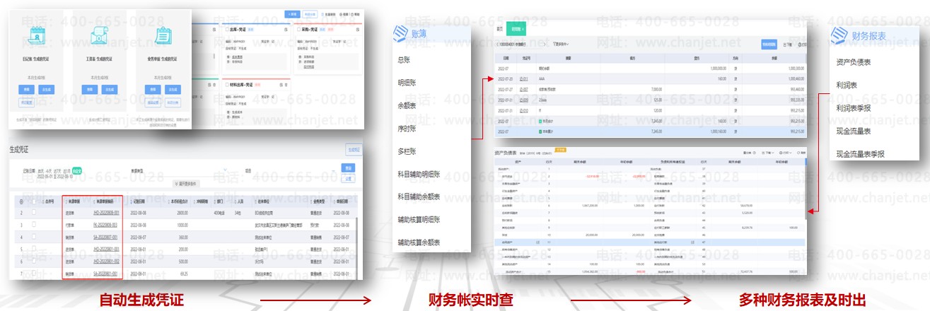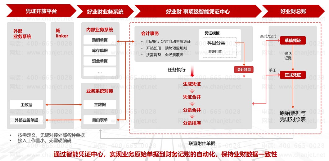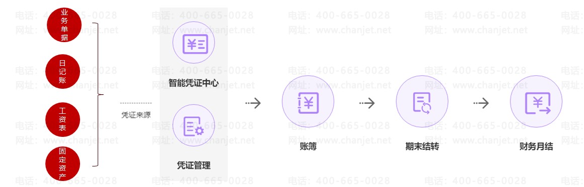 •内置凭证引擎,集中、批量处理各模块的业务入账事务;预置凭证模板规则,开箱即用;