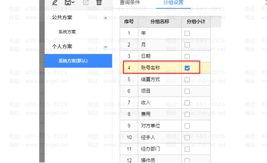 多个账号查询时,查询条件分组设置勾选账号分组行日记账同时查询多个账号余额不正确日记账同时查询多个账号余额。