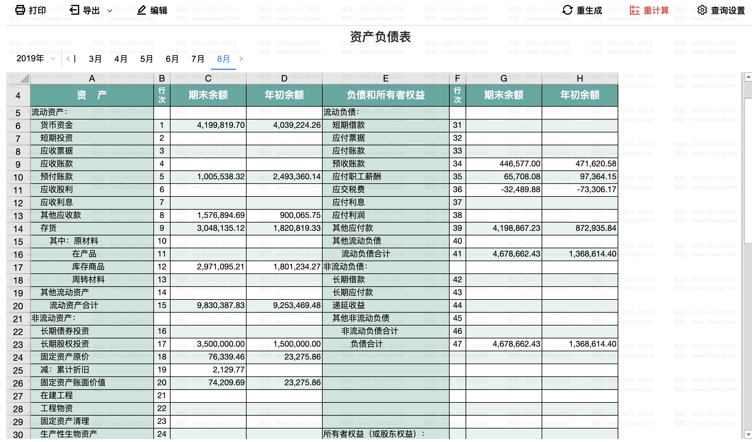 系统提供常用的固定报表样式,如:资产负债表、利润表、现金流量表。