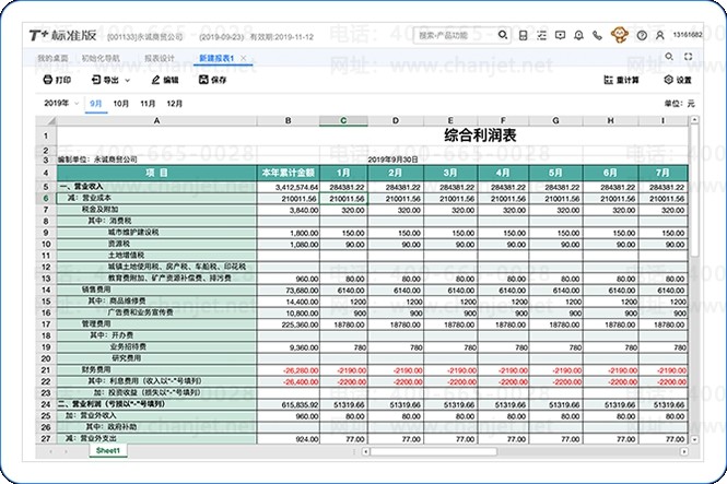 新 T-UFO 报表基于 Excel 全新报表组件,延续了 Excel 的操作习惯,全新体验的基于单元格设计的报表应用。提供财务人员常用的财务核算报表、税务申报表,云管理报表。支持用户根据实际需要定制企业的个性化报表。支持辅助核算报表,如部门资产负债表,项目利润表等。支持编制多公司管理报表。