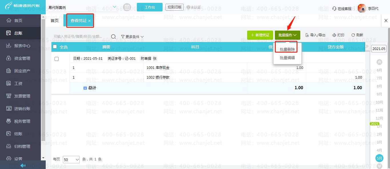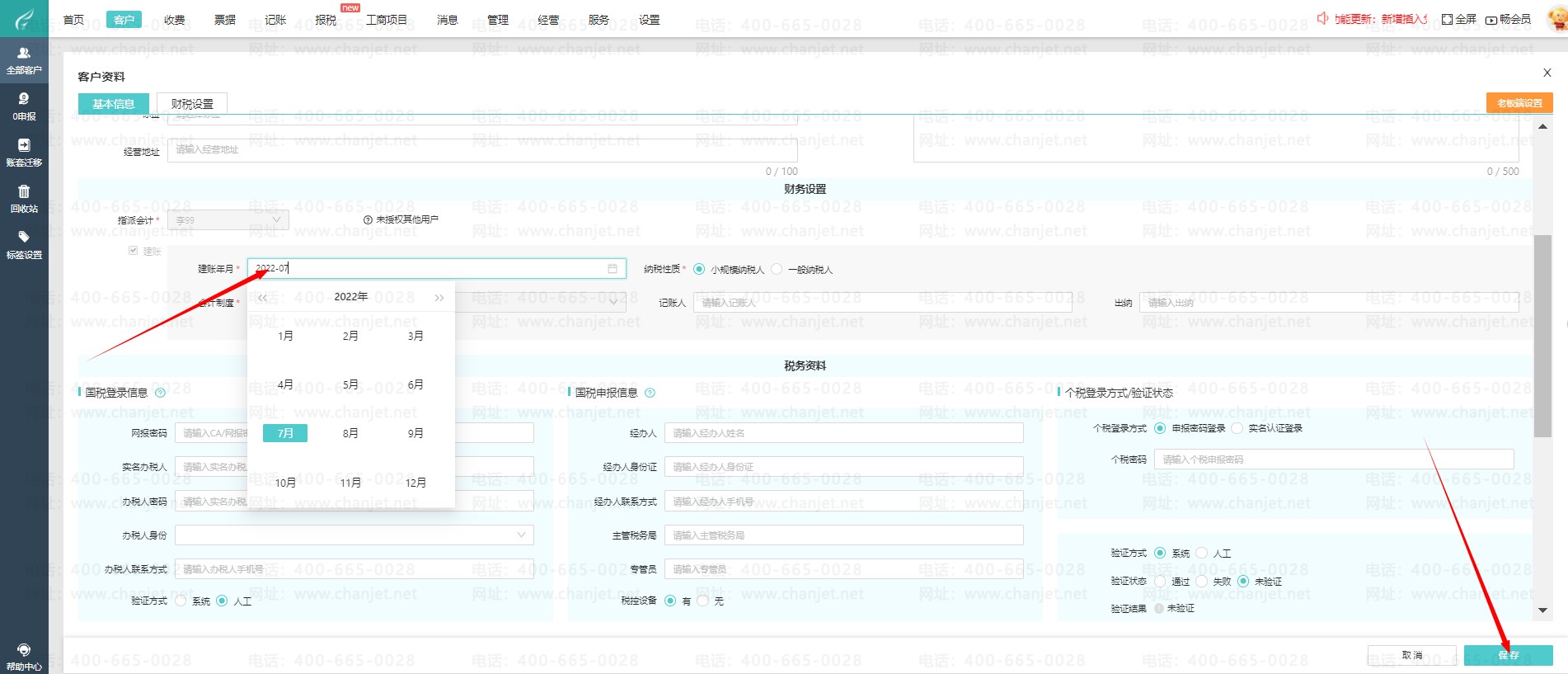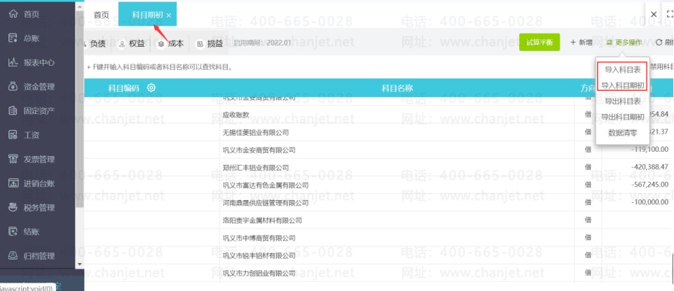3、如果科目期初无数据,只是新增了凭证,那么可以删除凭证,删除凭证后,可以去修改财务启用日期。删除前建议进行在【查看凭证】点击右上角导入,把凭证表格下载,后下载账套备份,然后可回到【工作台】--【客户】--【全部客户】页面,找到对应账套,点击账套名称,进入客户资料编辑页面。拉到最底下直接修改建账年月,点击保存即可。修改完账期后,可以在【查看凭证】页面点击右上角导入,把凭证导入。