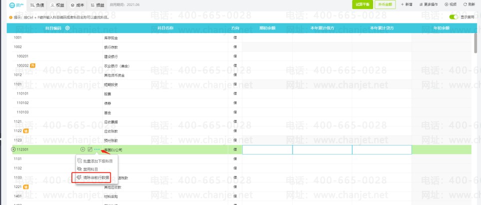2、如果在建账后新增了凭证发现建账日期错误的话需要修改建账日期,那么删除凭证后可修改建账日期;如果录入了期初余额、固定资产卡片,无论是否新增凭证,都不允许修改建账日期,需要去删除对应数据;录入明细科目不影响建账日期的修改;科目期初数据现系统支持一键清除所有数据或者直接清空当行数据