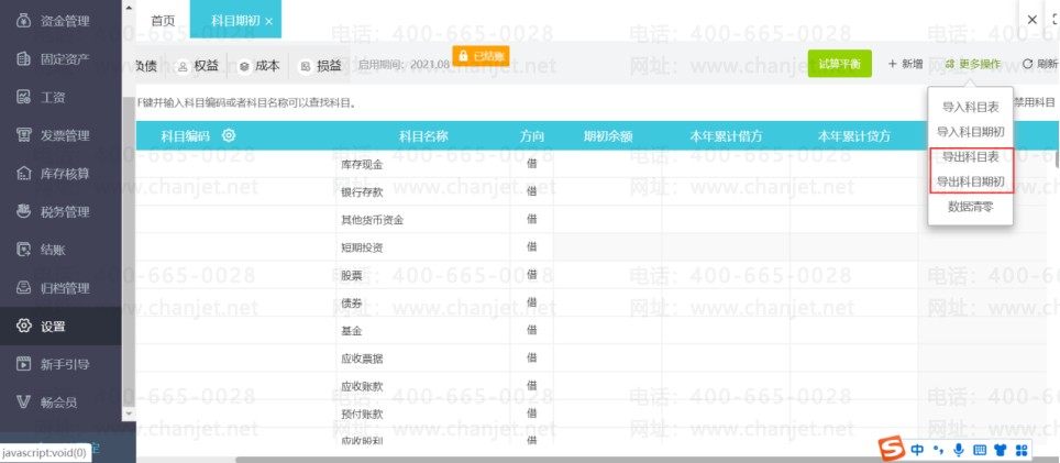 01 科目期初导出科目表和科目期初数据现可以直接导入新账套,无需再次整理,更为便捷!