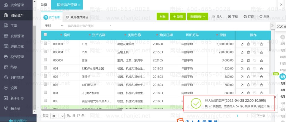 02 固定资产、工资、日记账下载表格样式优化,更为美观,直接在系统中下载的表格也无需再次整理导模板可直接导入系统,并且导入固定资产、工资表增加重新匹配功能,更灵活!