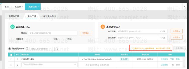 账套迁移已采集列表界面更新提示:采集、下载的文件,有效期半年,有效期内可以导入到系统中