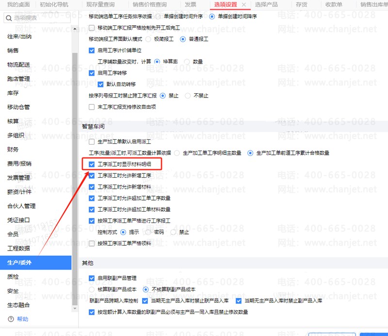 选项设置-生产/委外页签需要勾选工序派工时显示材料明细
