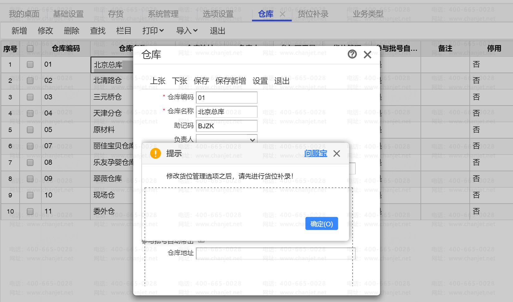 3.在系统使用的任何阶段都允许中途启用仓库的【货位管理】;