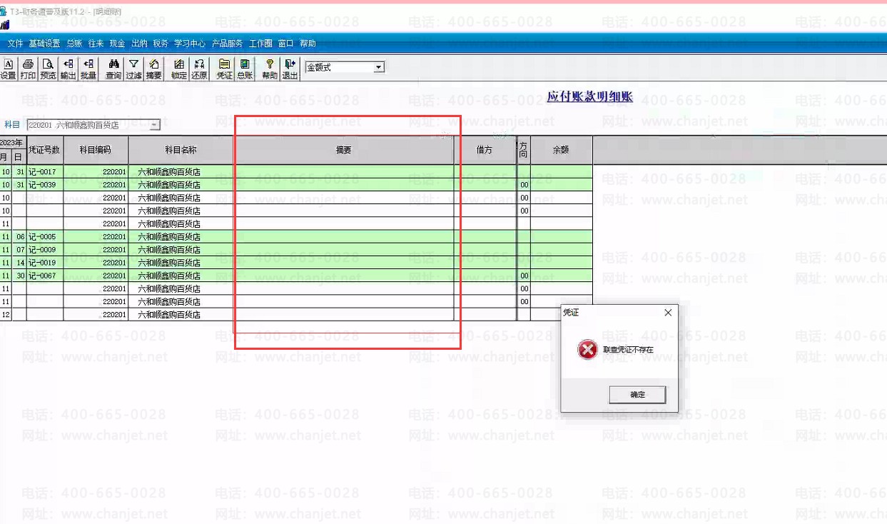 【问题描述】应付明细账显示有凭证号,但是没有数据显示!