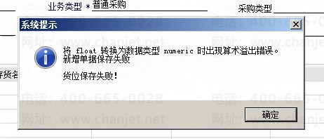 T6采购订单生成入库单报将float转换为数据类型numeric时出现算出溢出错误,货位保存失败。不能生成入库单。客户启用了货位。可以看截图,订单里的两个存货一个是100000,一个是200000,数量比较大,是不是这个原因导致的。