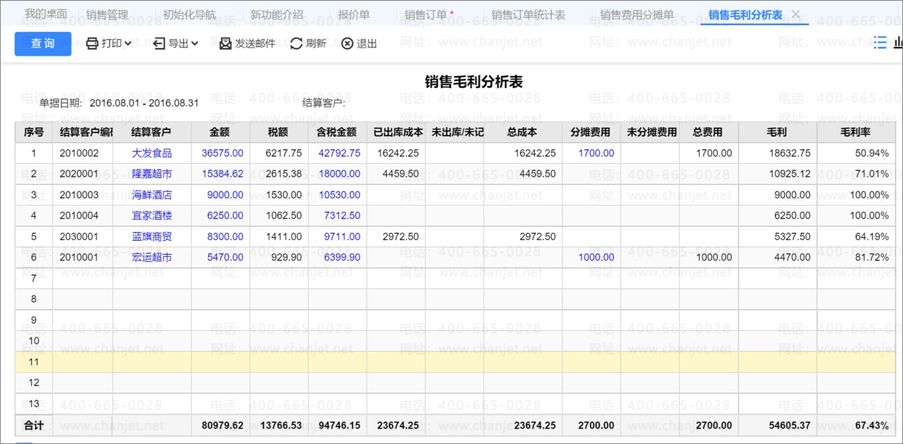 对策:通过销售费用单,管理各项销售费用,并可分摊到销售业务员,使利润考核更加准确