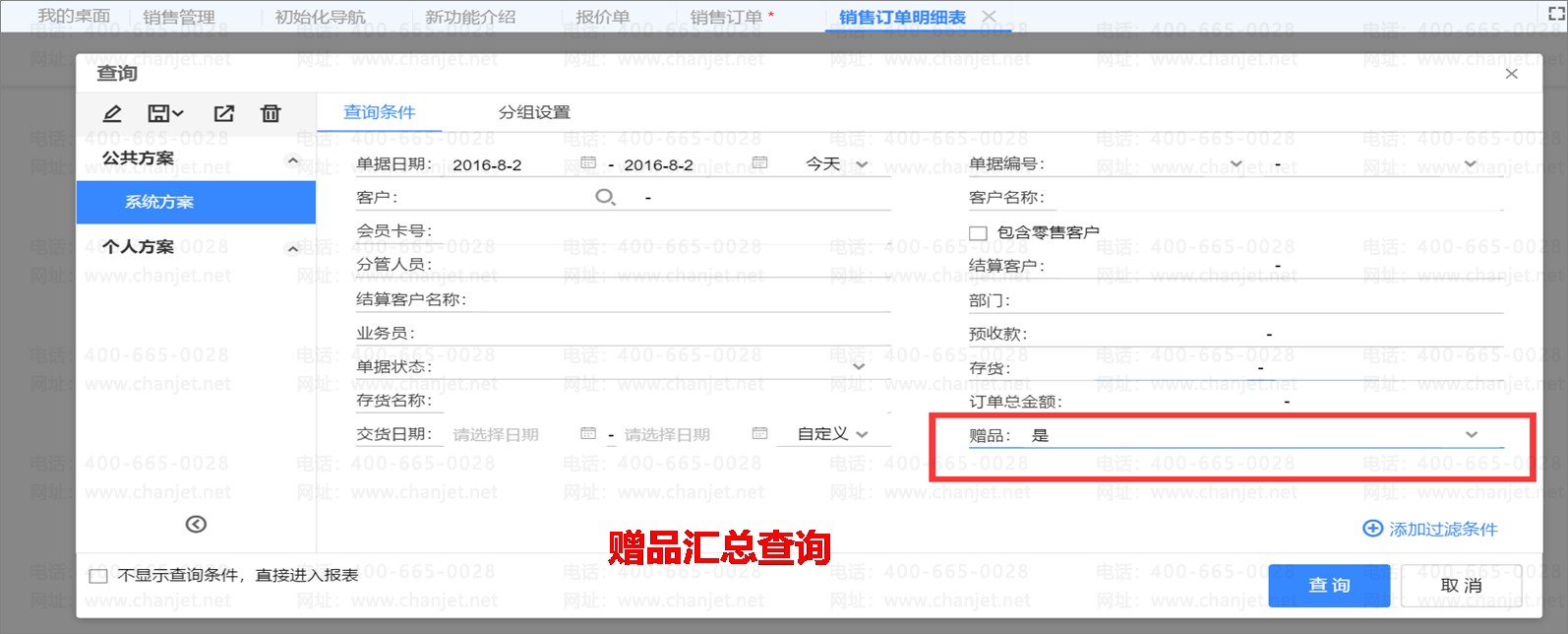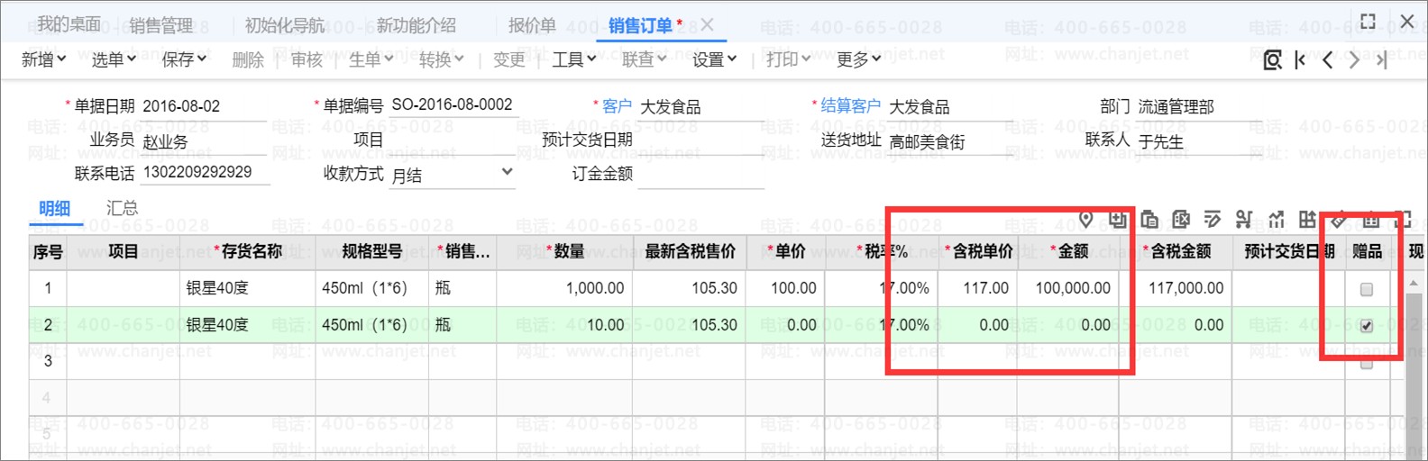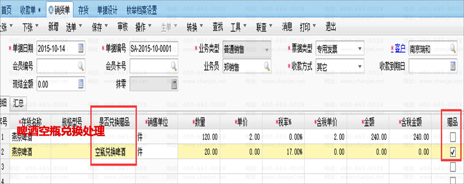 对策:通过勾选业务单据中的赠品标识实现赠品的业务处理,并可以在报表中查询,