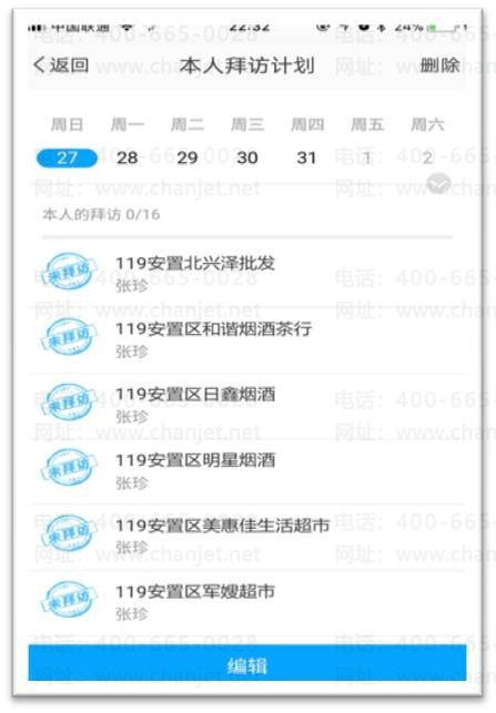 业务员手机上每天上班前打开拜访计划的日历,选择一条路线作为当天的拜访计划。每拜访一家客户计划自动更新达成状态,可实时查看拜访进度。