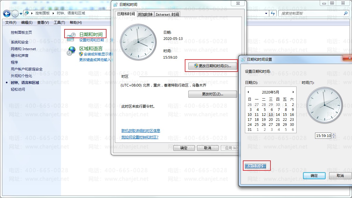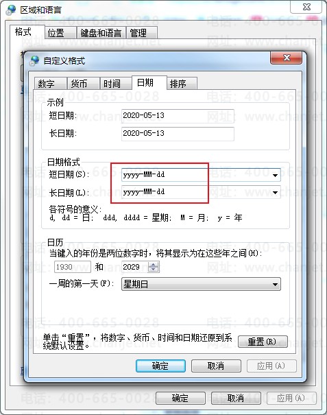 同样是打开控制面板,刚才前面有说过怎么打开,这里就不说了。在控制面板里依次点击时钟-日期和时间-更改日期和时间-更改日历设置-将短日期改为yyyy-mm-dd,然后复制短日期格式粘贴在长日期格式那里,点击确定。具体看下图的操作步骤。