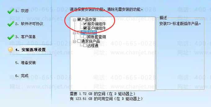 此处只需要选择2个服务端组件和客户端组件就行了,其他的勾都可以取消,再点击下一步,继续安装用友财务软件。