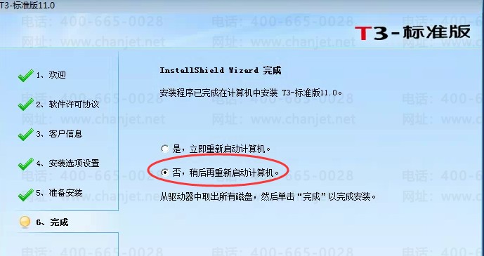 最后就是安装完成的提示,这里我们选择否,不要重启电脑,接下来还会有一些配置,请耐心看完。
