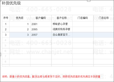 配货管理-补货优先级:控制层在PC端为客户设置补货优先级,按照现金结算的客户设置为高优先级,赊销客户设置为B级的顺序,当库存不足时,系统自动按照优先级别高的客户优先补足配货数量,保障优质客户优先保障配货。