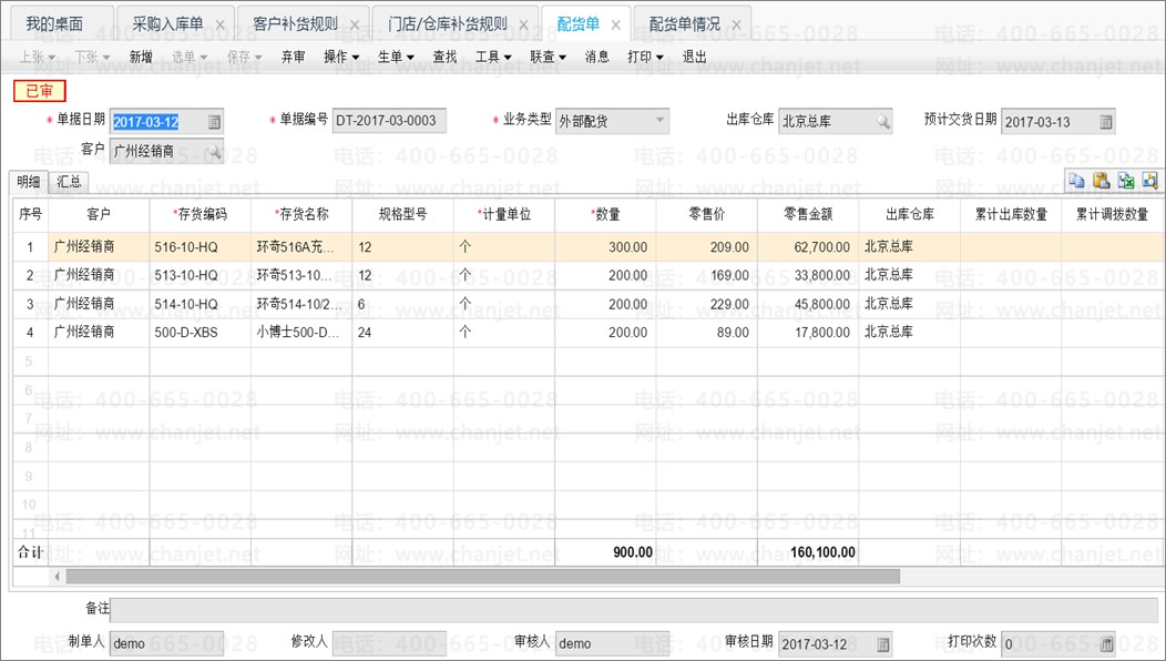 内勤进行要货/补货评审:补货优先级和客户补货规则,确定优先配给谁?配多少货?特别在优先条件同样情况下,参考客户库存情况,合理针对业务员库存上报,根据分配优先级和数量,不出现积压或断货情况。
