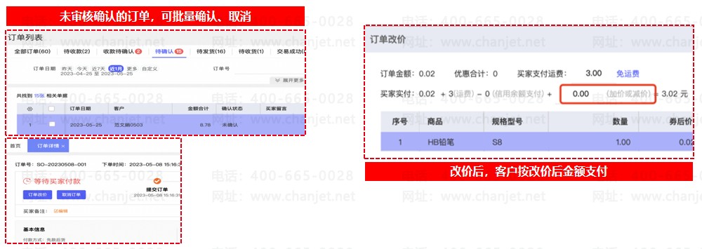 批发场景下:针对渠道KA等【赊欠下单】客户,且【未启用信用管控】的企业,需要人工参与来【审核确认】订单;顾客打电话给业务或内勤,希望把某个单子取消掉,重新下单的情况;