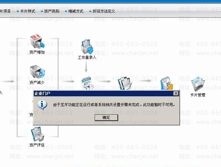 进入用友通T3固定资产点击资产增加时提示“由于互斥功能正在运行或者相关设置步骤未完成,此功能暂时不可用”?