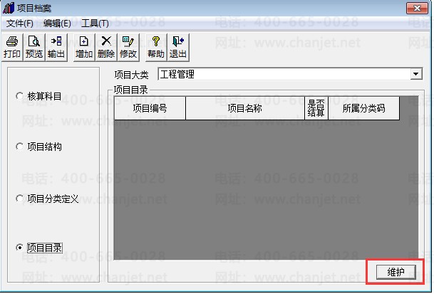 五、增加好项目分类后,在项目目录中点击维护。