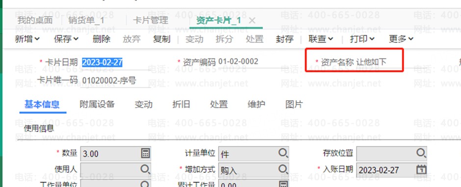 当资产卡片做了资产处置单,卡片的资产名称字段是置灰不能再进行修改的。