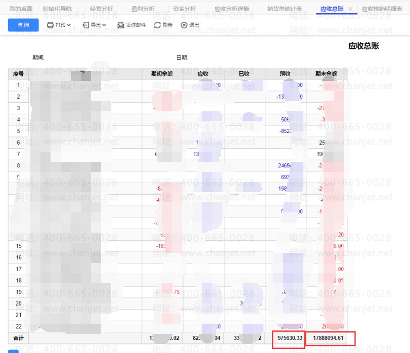 可以通过应收总账查询出来应收余额17888094.61和预收975630.33