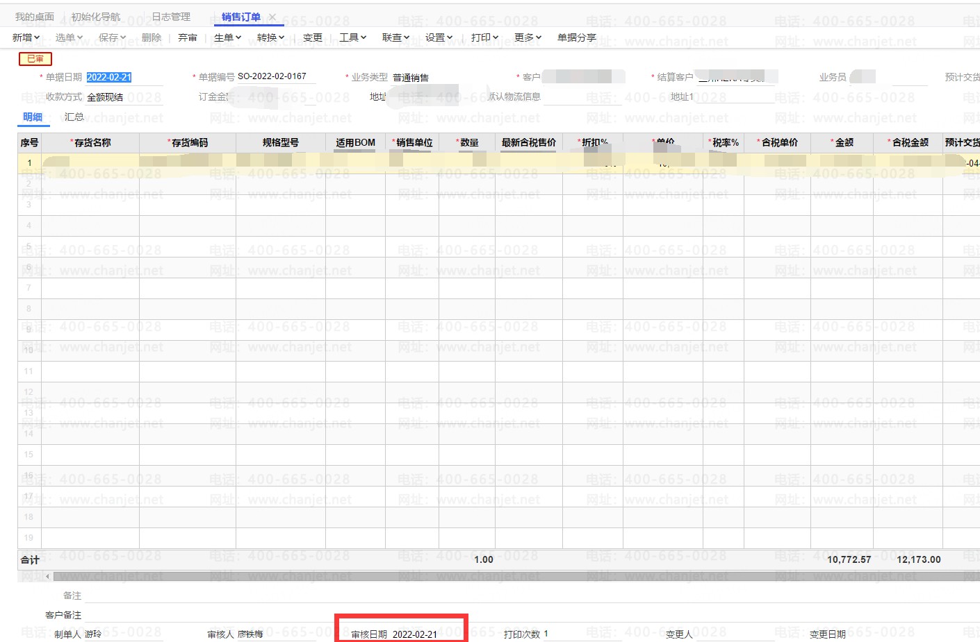 单据的审核日期不是登录日期比如单据SO-2022-02-0167,单据审核日期为2022-02-25,审核后单据上的审核日期为2022-02-21