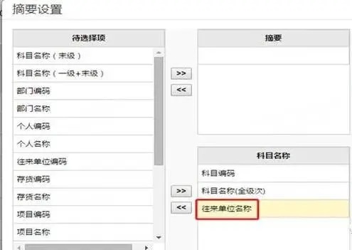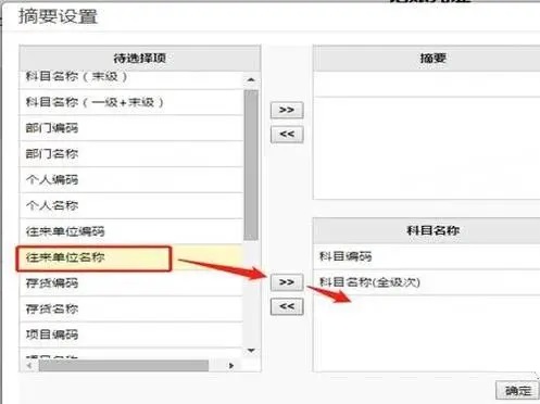 4、选中左侧的往来单位名称,再点击向右按钮,如图下操作: